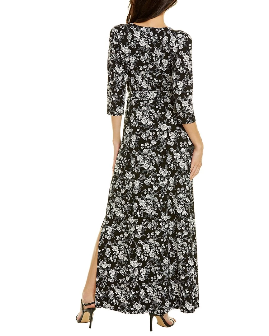 - Design Details – Wrap-Style Bodice, 3/4-Length Sleeves, Self-Tie Sash At Waist, Side Slit At Right Seam